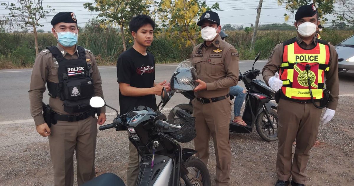 พ.ต.อ.อรรถพร กลั่นเรืองแสง ผกก.สภ.พลกรัง มอบหมวกกันน็อค