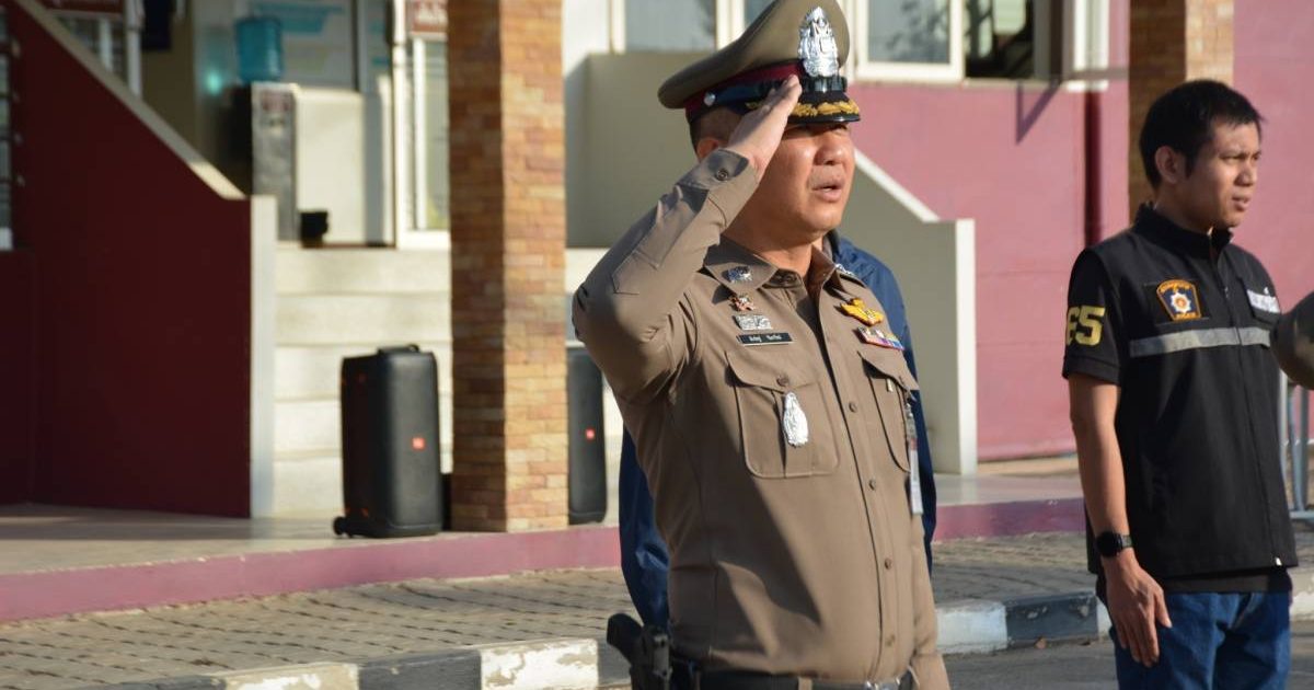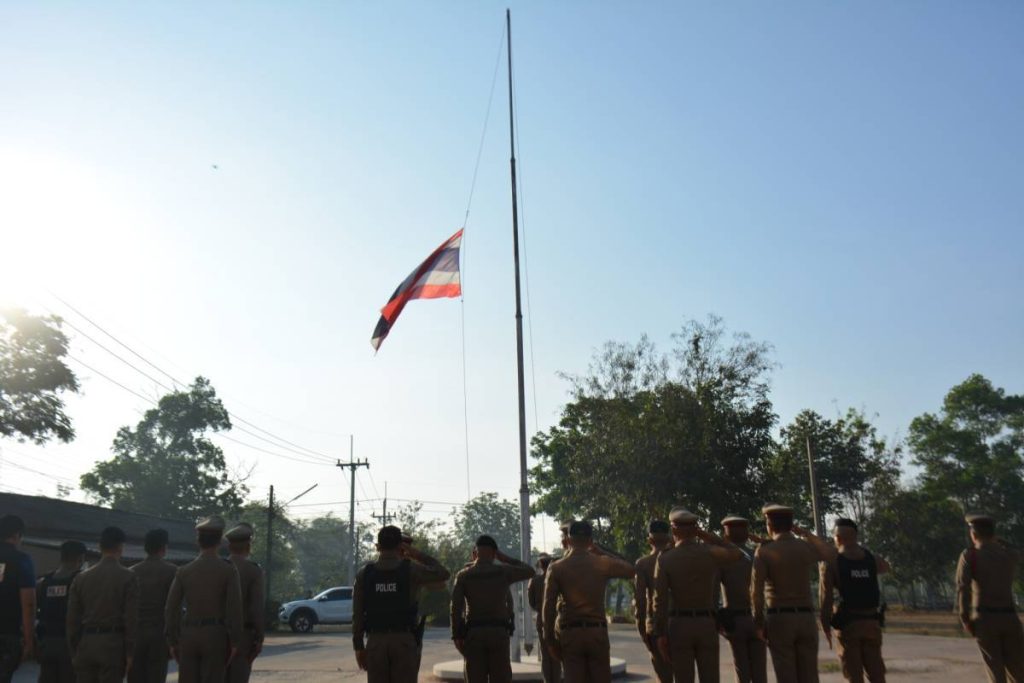 พ.ต.อ.พิเชษฐ์ จันทรัตน์ ผกก.สภ.พลกรัง เข้าแถวเคารพธงชาติ