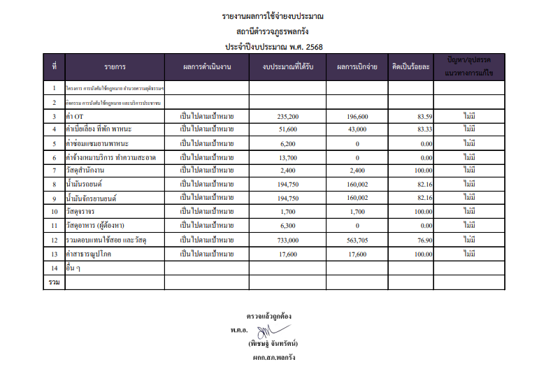 แผนการใช้จ่ายงบประมาณสถานีตำรวจประจำปีงบประมาณ 2568